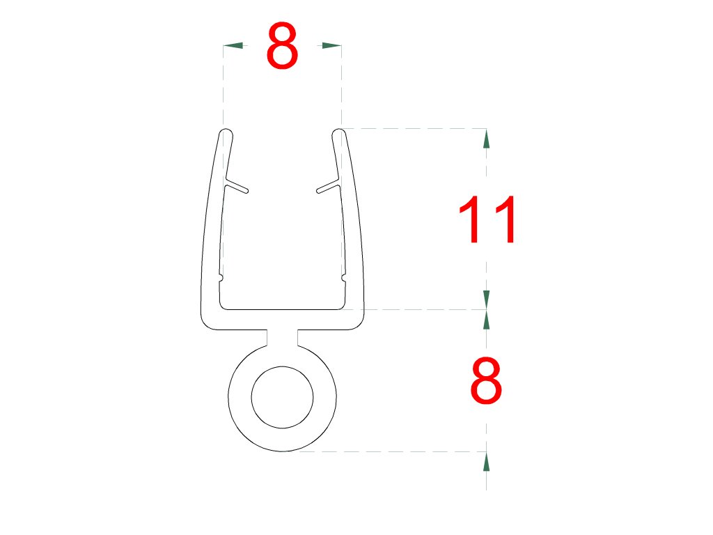 Plastové těsnění na sklo 8mm, mezi posuvné skleněné dveře a stěnu nebo podlahu, 2200mmDoplňkové parametry