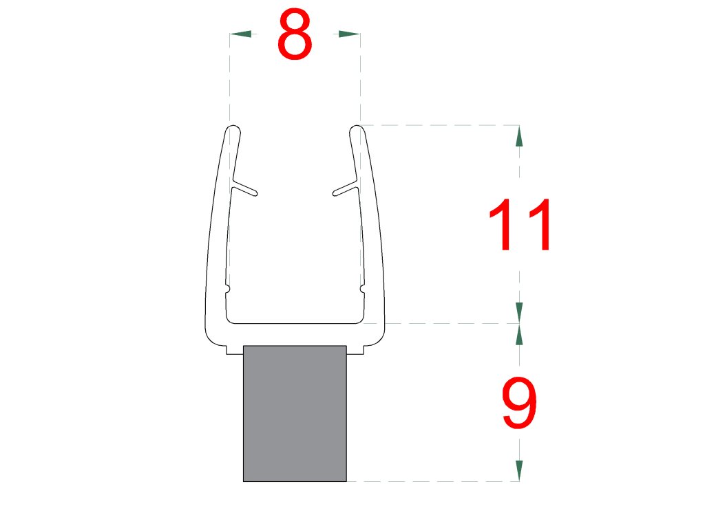 Plastové těsnění na sklo 8mm, mezi skleněné dveře a stěnu nebo podlahu, 2200mmDoplňkové parametry