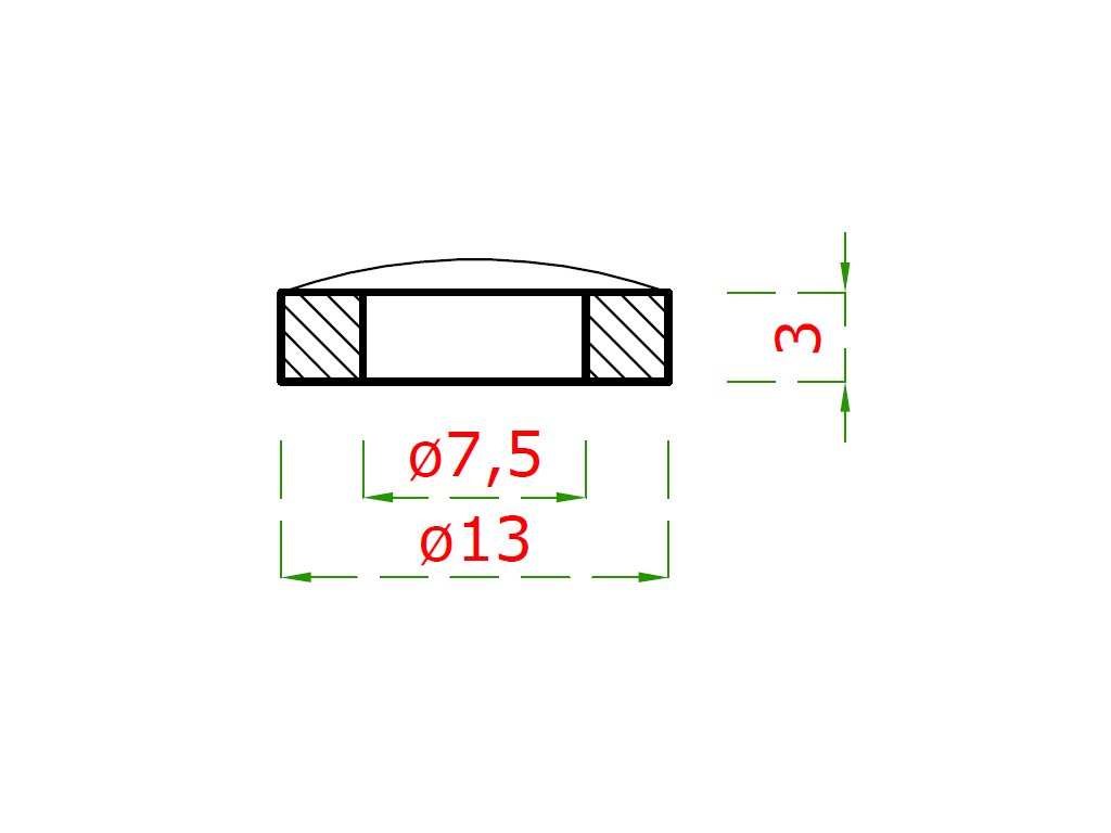 Podložka na trubku ø 42,4mm, (ø 13x3mm, díra ø 7.5mm), broušená nerez K320 /AISI304
