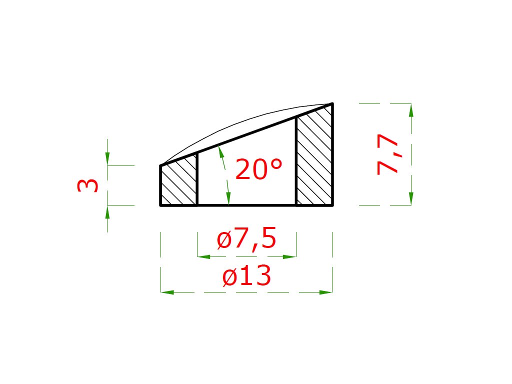 Podložka na trubku ø 42,4mm, úhel 20° (ø 13x2.75mm, díra ø 7.5mm), broušená nerez K320 /AISI304