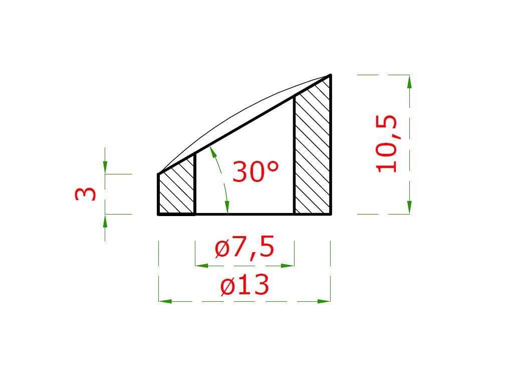 Podložka na trubku ø 42,4mm, úhel 30° (ø 13x2.75mm, díra ø 7.5mm), broušená nerez K320 /AISI304