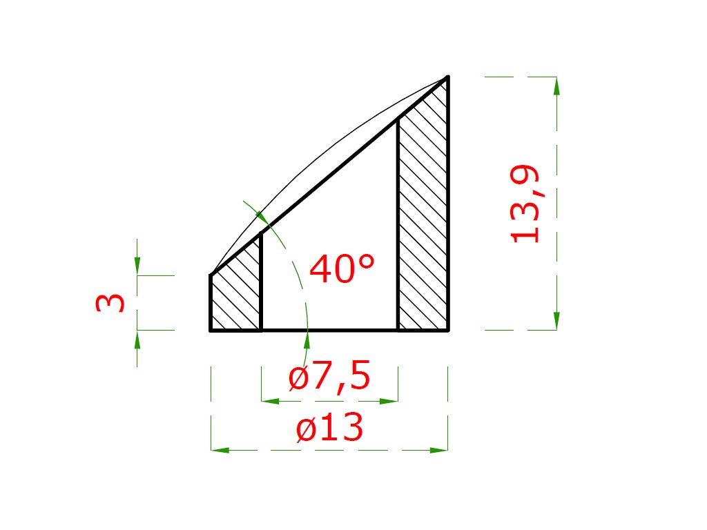 Podložka na trubku ø 42,4mm, úhel 40° (ø 13x2.75mm, díra ø 7.5mm), broušená nerez K320 /AISI304