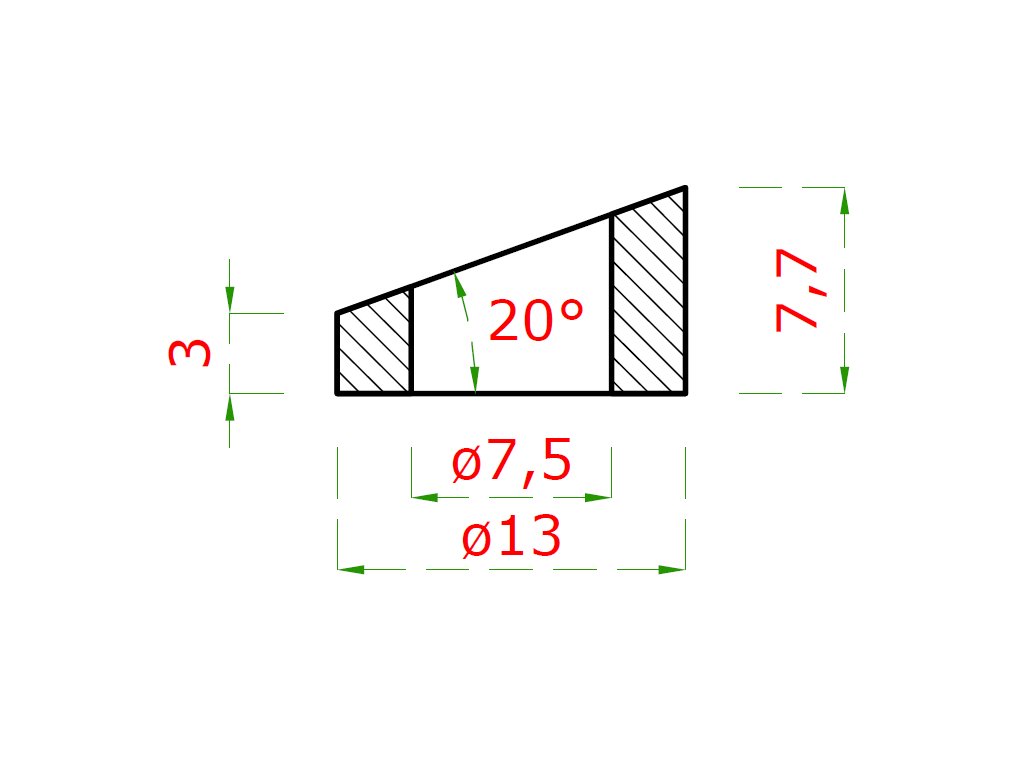 Podložka plochá, úhel 20° (ø13x2,75 mm, díra ø7,5 mm), broušená nerez K320 / AISI304Doplňkové parametry