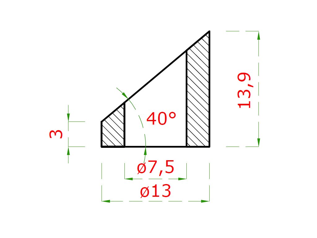 Podložka plochá, úhel 40° (ø13x2,75 mm, díra ø7,5 mm), broušená nerez K320 / AISI304Doplňkové parametry