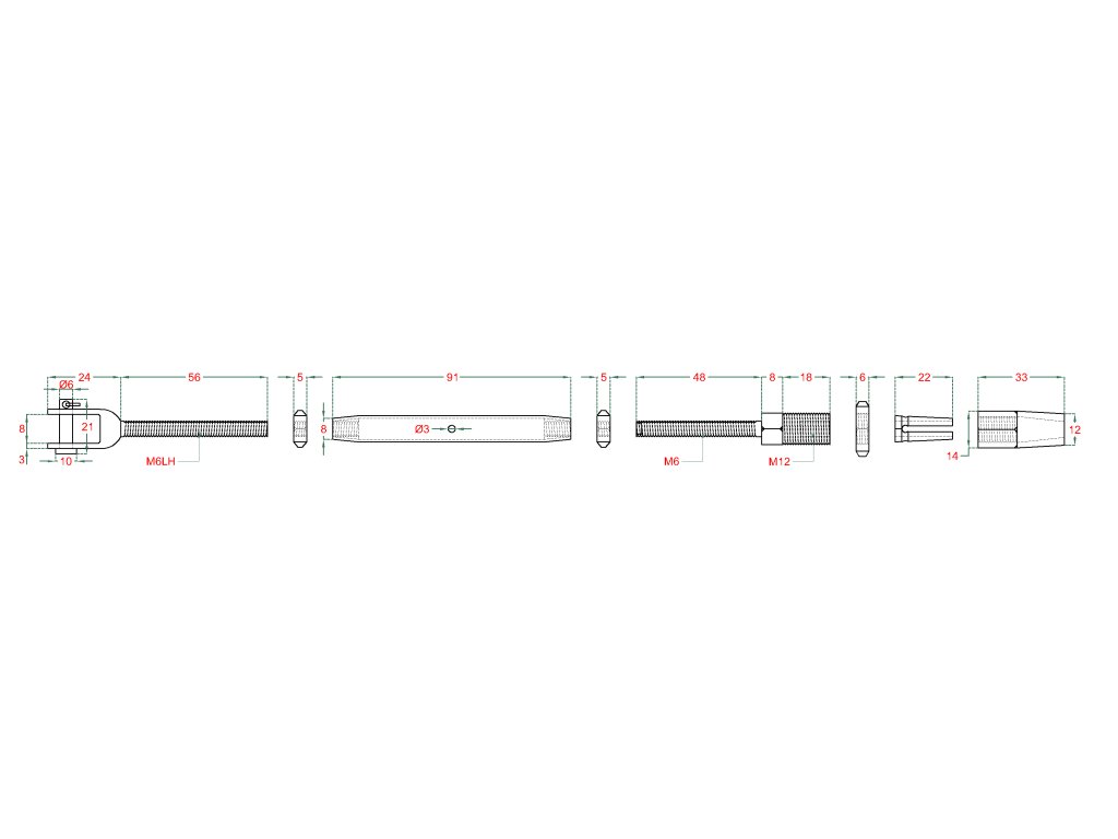 Úchyt, šponovák pro nerezové lanko ø4 mm se závitem M6 a LH6, broušená nerez K320 / AISI304Doplňkové parametry