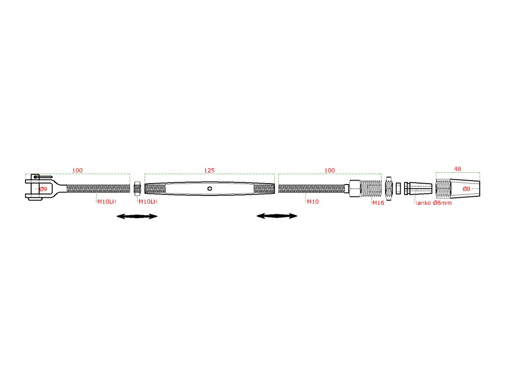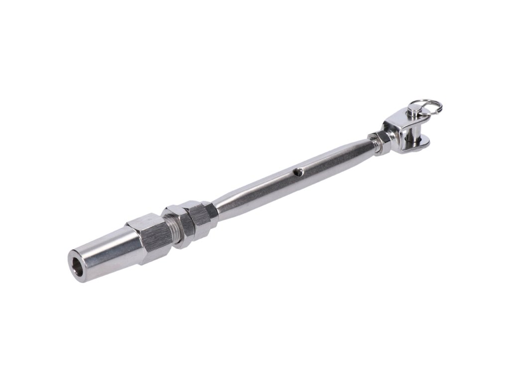 Úchyt, napínák pro nerezové lanko ø6 mm se závitem M8 a LH8, broušená nerez K320 / AISI304
