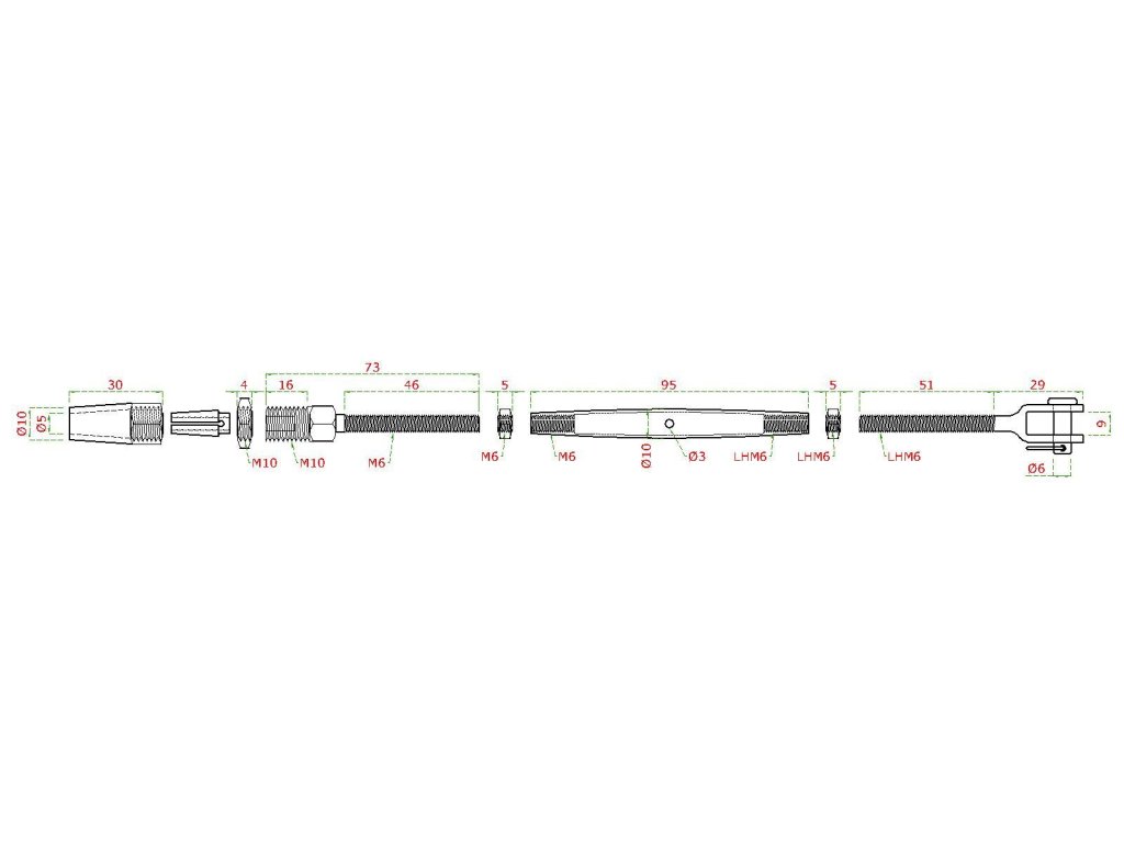 Úchyt, šponovák pro nerezové lanko ø3 mm se závitem M6 a LH6, broušená nerez K320 / AISI304Doplňkové parametry