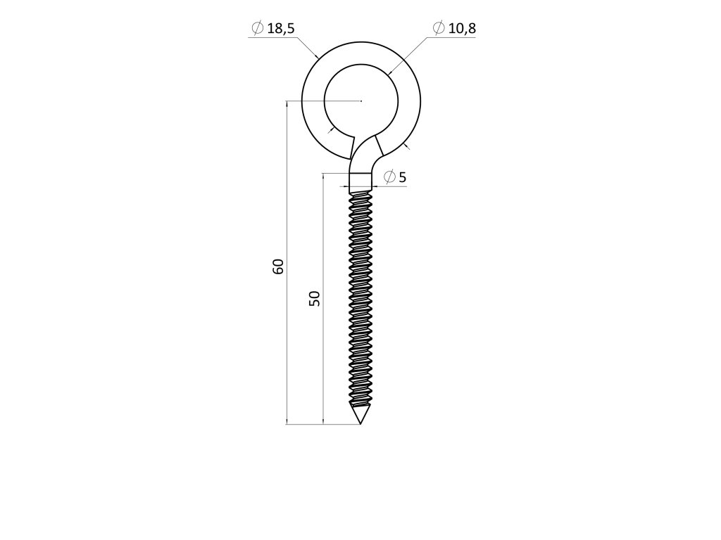 Úchyt do dřeva pro držák lanka, oko ø12mm, délka 50mm, broušená nerez K320 /AISI304Doplňkové parametry