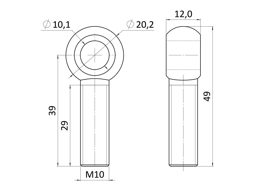 Úchyt s okem pro držák lanka, M10x40 mm, broušená nerez K320 / AISI304 DIN444Doplňkové parametry