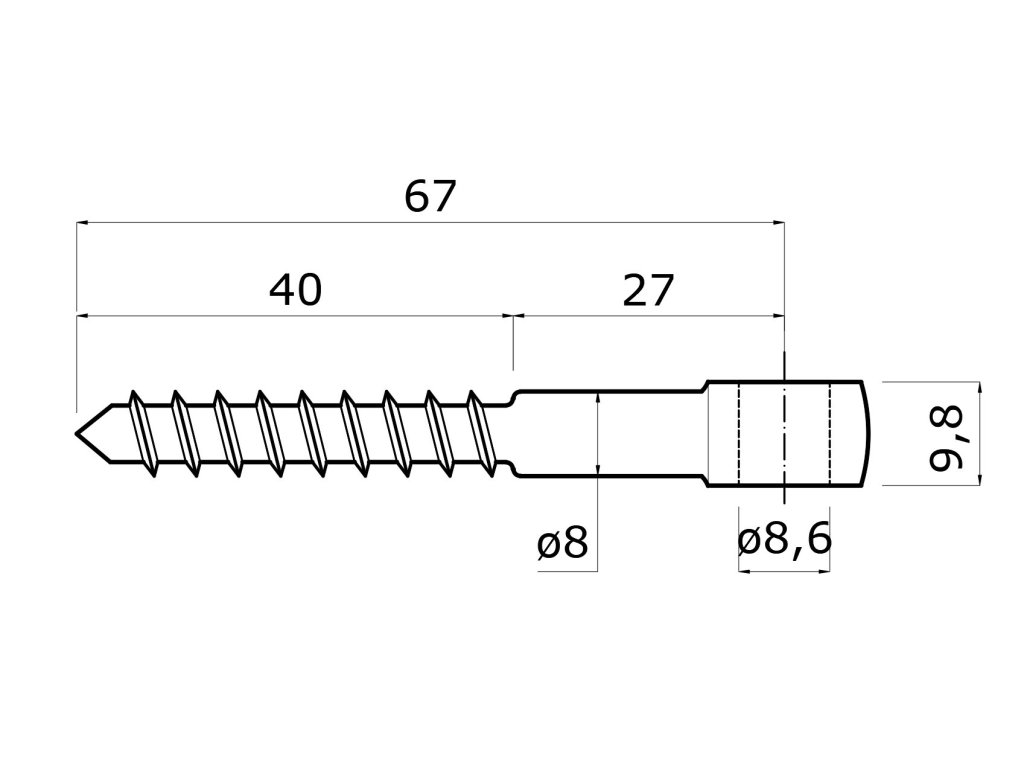 Úchyt do dřeva pro držák lanka, oko ø8.4mm, broušená nerez K320 /AISI304Doplňkové parametry