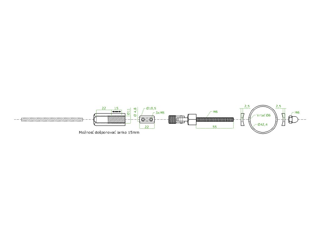 Úchyt pro nerezové lanko ø4 mm na trubku ø42,4 mm, broušená nerez K320 / AISI304Doplňkové parametry