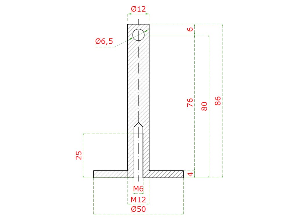 Přechodka lanka (pro lanko max. ø6 mm), s odsazením od podlahy 80 mm, vnější závit M12, vnitřní závit M6, broušená nerez K320 / AISI 316