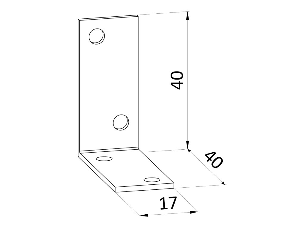 úhelník 40x40x17mm, 1,5mm, galvanicky pozinkovaný, otvory průměr 4,5mm - v počte 4ks