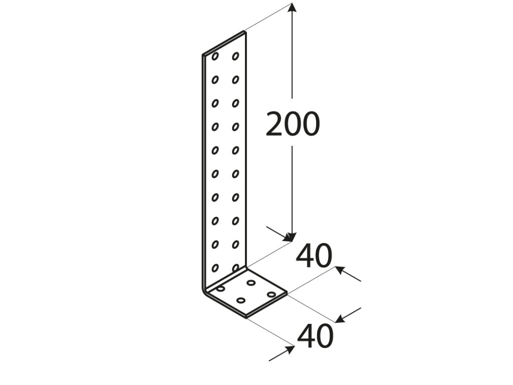 úhelník kotevní 200x40x40mm, 2,0mm, pozink, otvory průměr 5mm-24ks