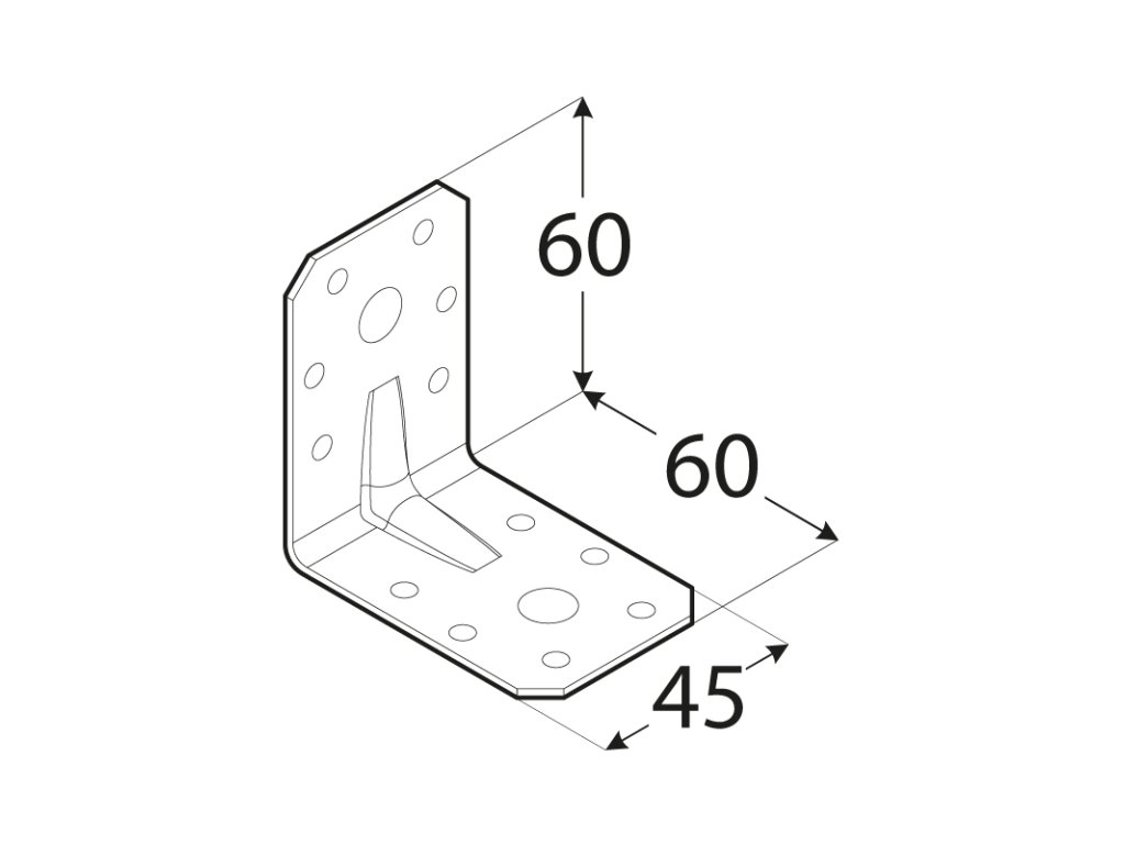 úhelník s prolisem 60x60x45mm, 2,0mm, pozink, otvory průměr 5mm-12ks, 11mm-2ks