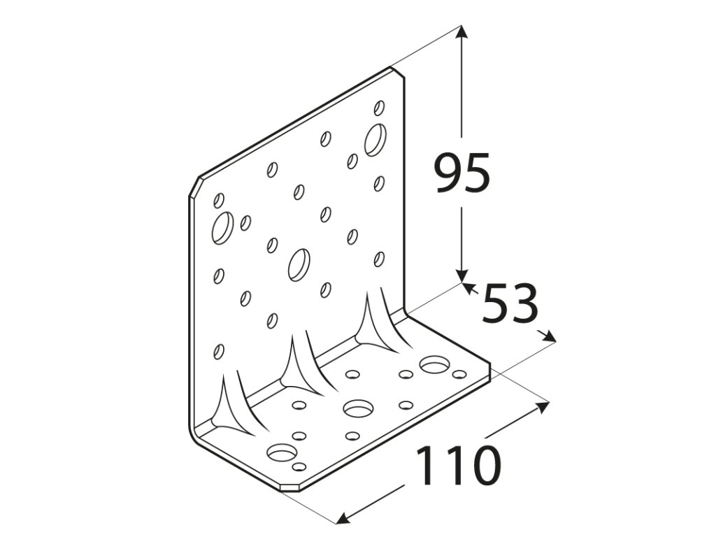 úhelník s prolisem 95x53x110mm, 2,5mm, pozink, otvory průměr 5mm-25ks, 11mm-6ks