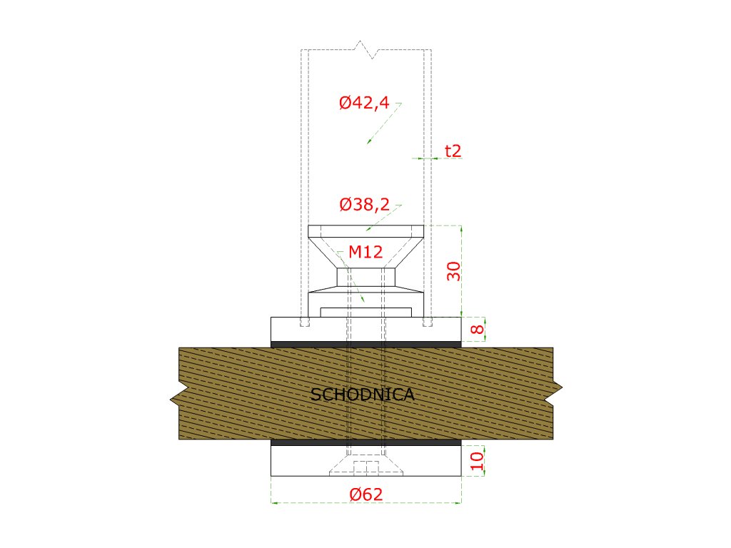 Držák (ø 62 mm) pro spodní kotvení sloupku - trubky ø 42,4 mm, broušená nerez K320 / AISI304Doplňkové parametry