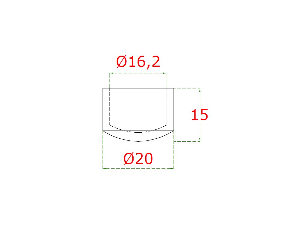 Ukončenie na trubku ø 16mm, brúsená nerez K320 /AISI304