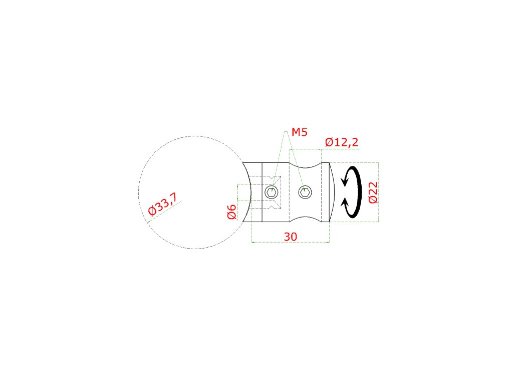 Držák tyče ø 12 mm na trubku ø 33,7 mm (30x22 mm), broušená nerez K320 / AISI304Doplňkové parametry