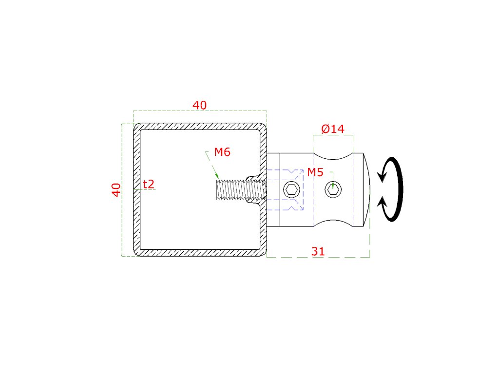 Držák tyče ø 14 mm, plochý (30x22 mm), broušená nerez K320 / AISI304Doplňkové parametry