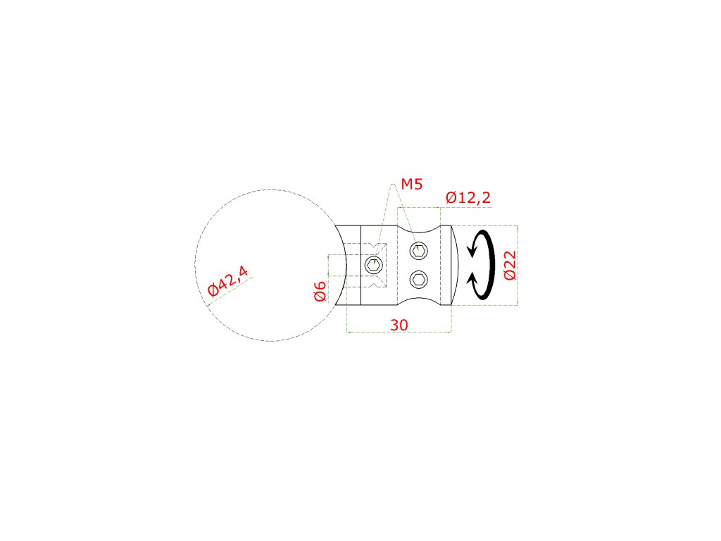 Držák tyče spojovací ø 12 mm přechodný na trubku ø 42,4 mm (30x22 mm), broušená nerez K320 / AISI304Doplňkové parametry