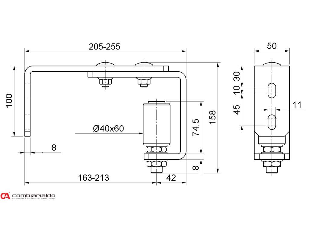 Horní vedení brány Combi Arialdo s nylonovou kladkou 40 x 60 mm