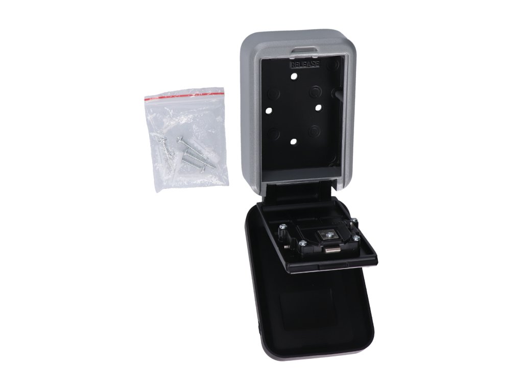 Schránka na klíče s kódovým zámkem, využitelná u B&B. Schránka má pryžový kryt proti zatečení.