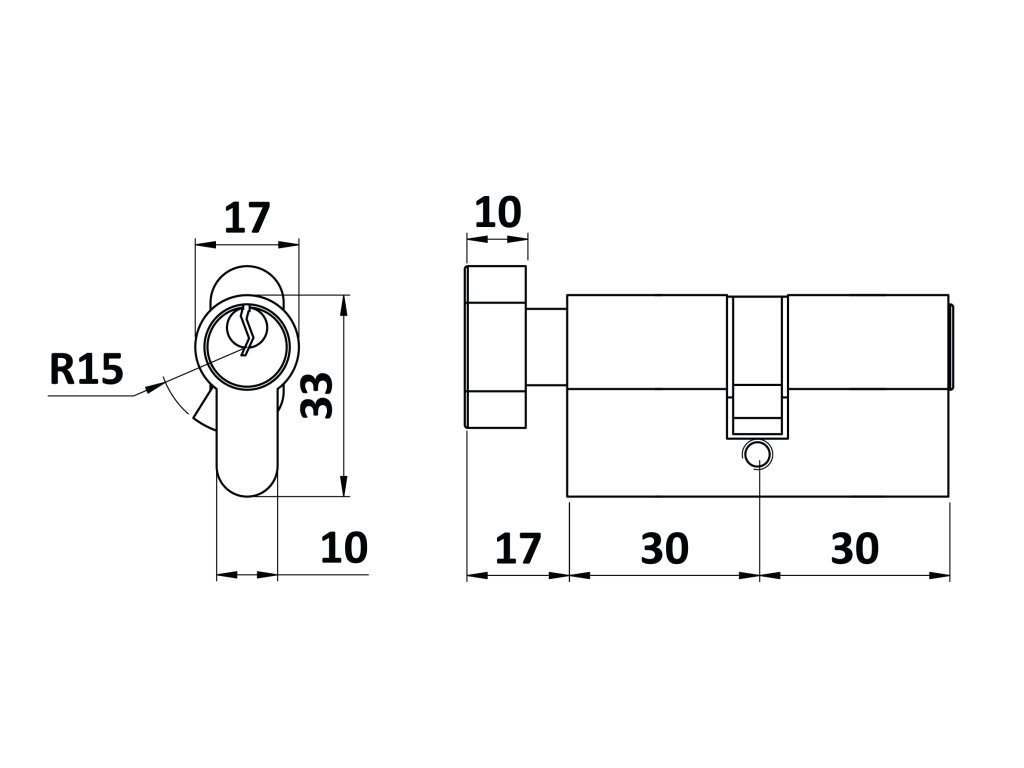 Cylindrická vložka EURO 30/30mm s kulkou, niklová, 3 klíče, šroub M5x65mm
