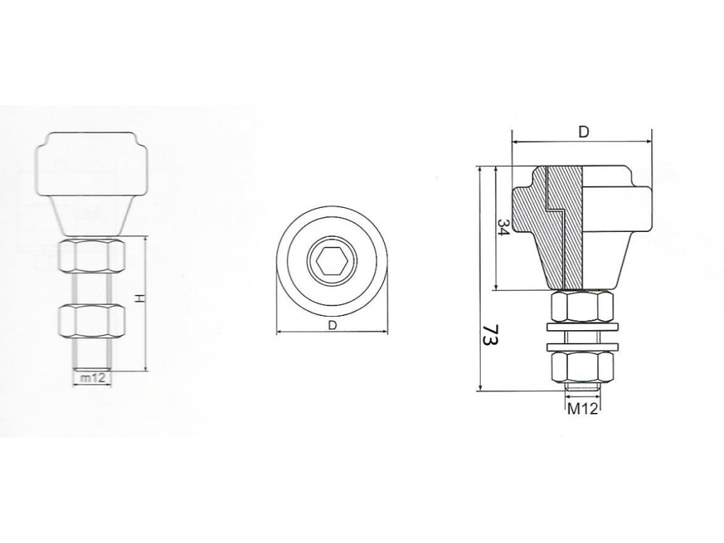 Polyamidový vodící váleček D-34mm, H-39mm, M12 pro horní vedení posuvných bran.Doplňkové parametry
