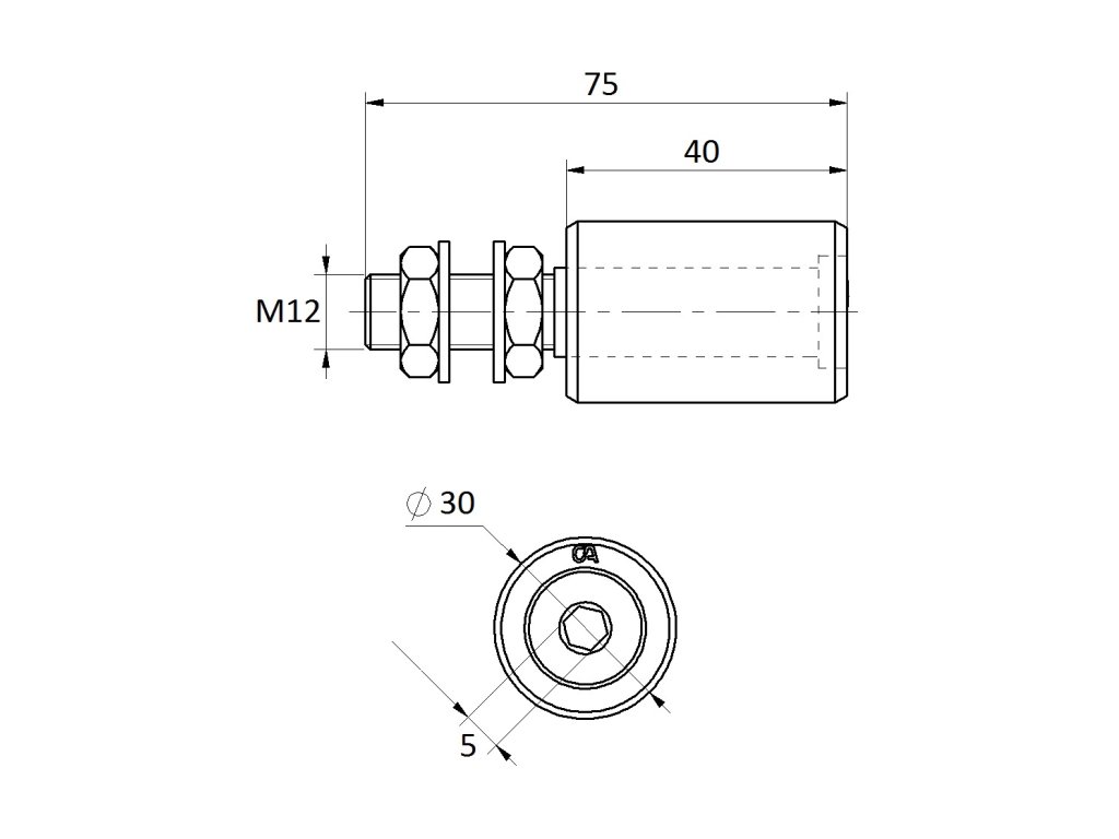 Vodicí kladka ø30, H-40mm, závit M12, nylonová, horní