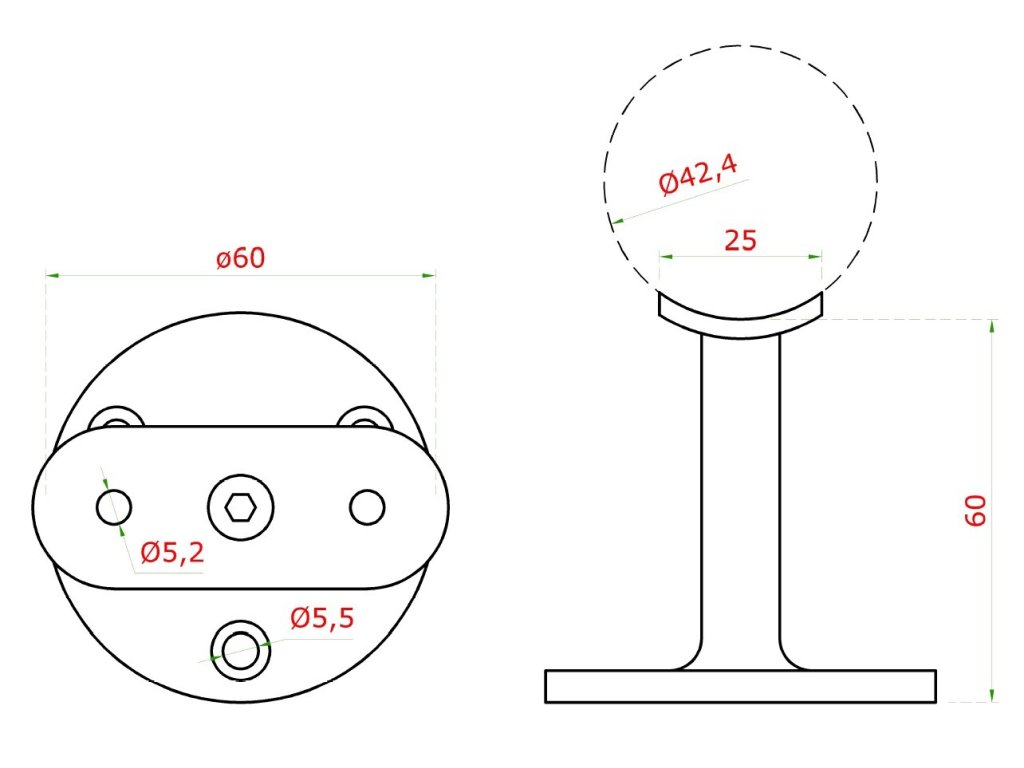 Držák madla na trubku ø 42.4mm, broušená nerez K320 / AISI304