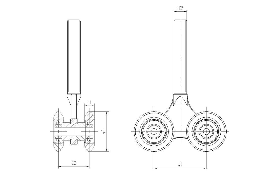 Závěsný nylonový vozík se 4 kolečky pro profil C920M. Nylonová kolečka eliminují nežádoucí zvuky při pohybu ve vodicím profilu.Doplňkové parametry