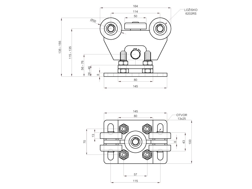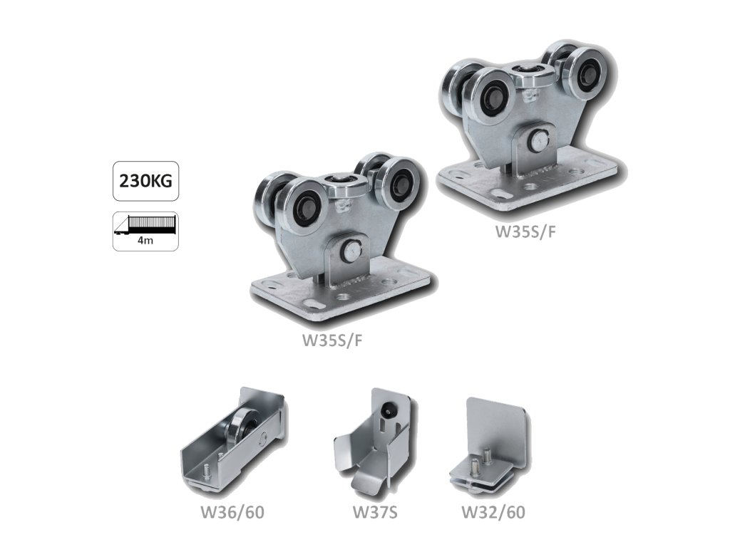 Set pro samonosný systém 60 x 60 x 4 mm, 2x vozíky, 1x doraz, 1x náběhové kolečko