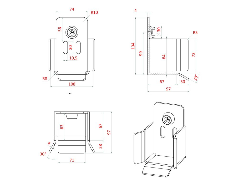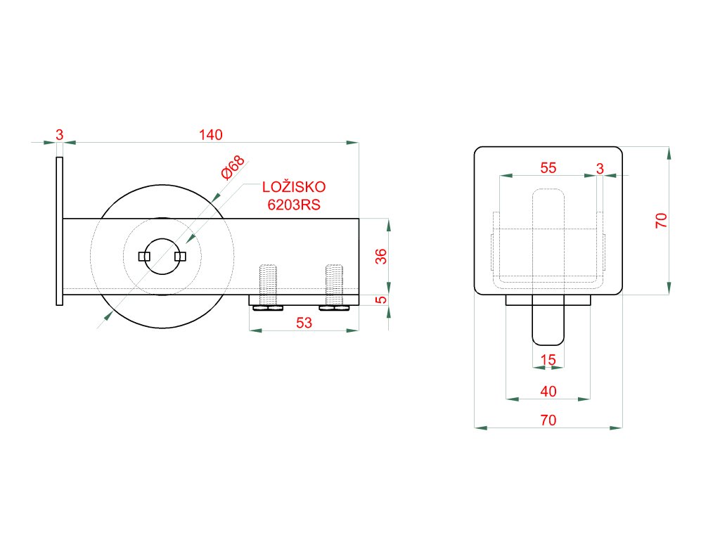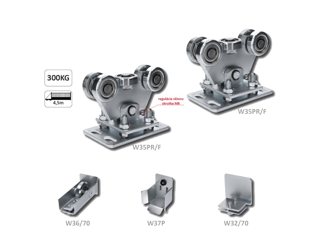 Set pro samonosný systém 70 x 70 x 4 mm, 2x regulovatelný vozíky, 1x doraz, 1x náběhové kolečko, 1x záslepka
