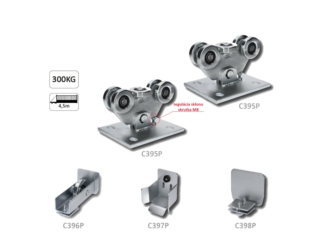 Set pro samonosný systém PICCOLO 69 x 69mm, 2x vozík C395Piccolo Klasic, 1x náběh. kolečko C396Piccolo, 1x doraz C397P, 1x krytka C398P