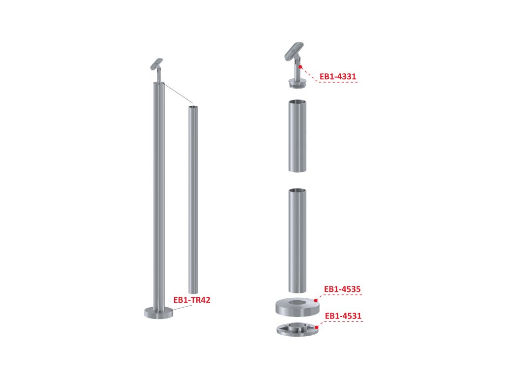 Nerezový sloup, vrchní kotvení, bez výplně, vrch nastavitelný (ø42,4x2 mm), broušená nerez / AISI304Doplňkové parametry