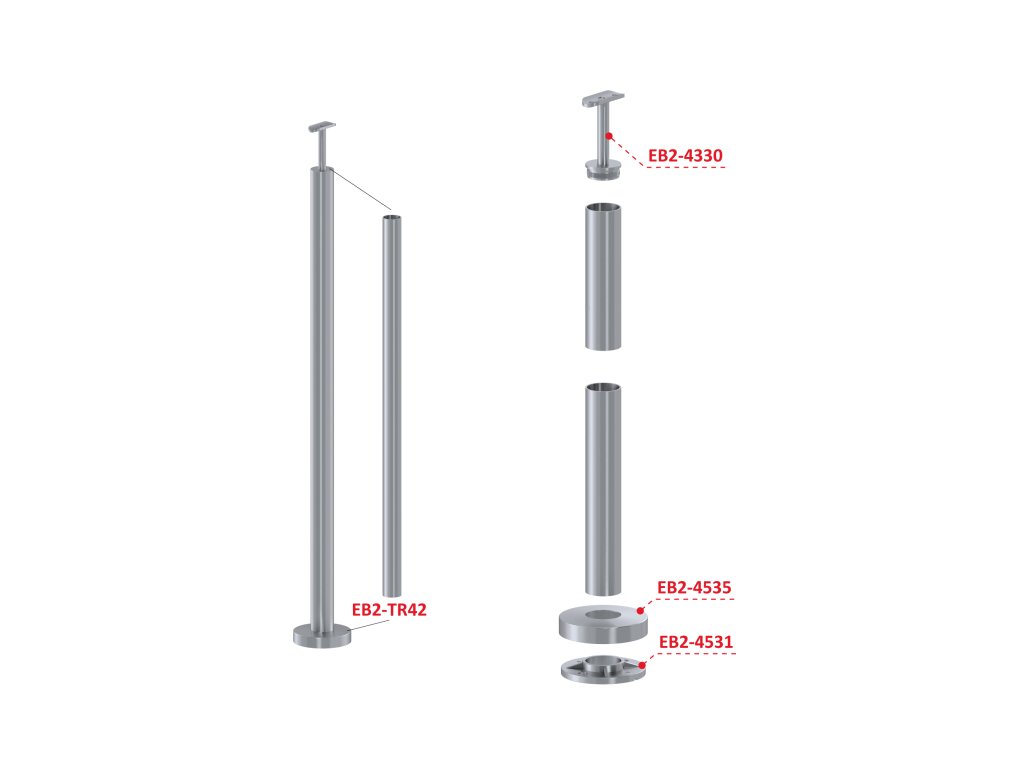 Nerezový sloup, vrchní kotvení, bez výplně, vrch pevný (ø42,4x2 mm), broušená nerez K320 / AISI316Doplňkové parametry