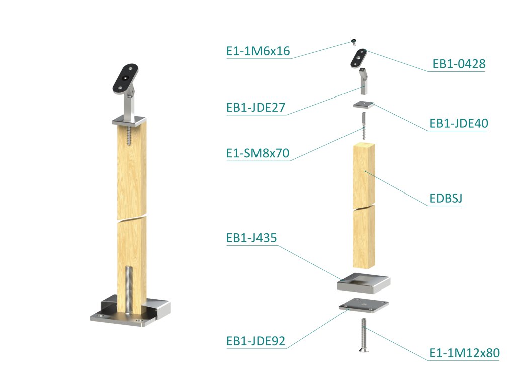 dřevěný sloup, vrchní kotvení, bez výplně, vrch nastavitelný (40x40mm), materiál: buk, broušený povrch s nátěrem BORI (bezbarvý)
