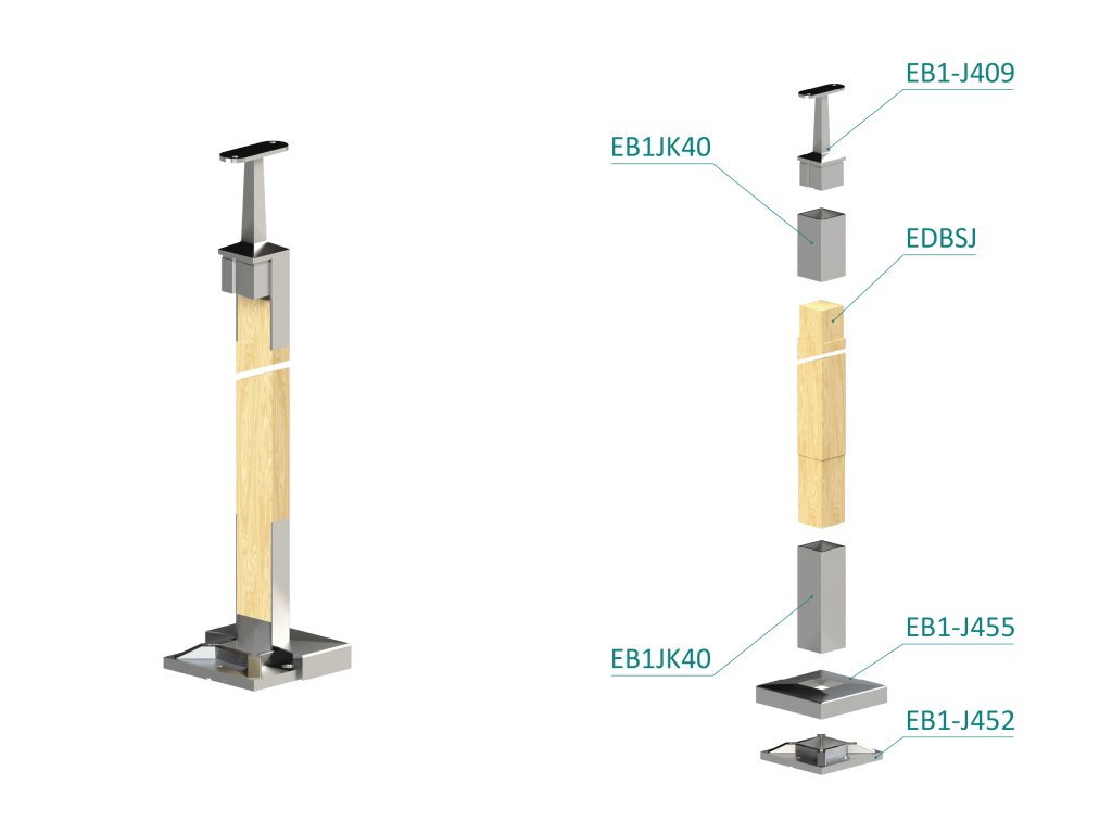 Dřevěný sloup, vrchní kotvení, bez výplně, vrch pevný (40x40 mm), materiál: buk, broušený povrch bez nátěruDoplňkové parametry