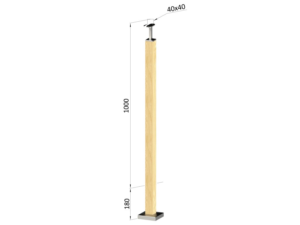 dřevěný sloup, vrchní kotvení, bez výplně, vrch pevný (40x40mm), materiál: buk, broušený povrch bez nátěru