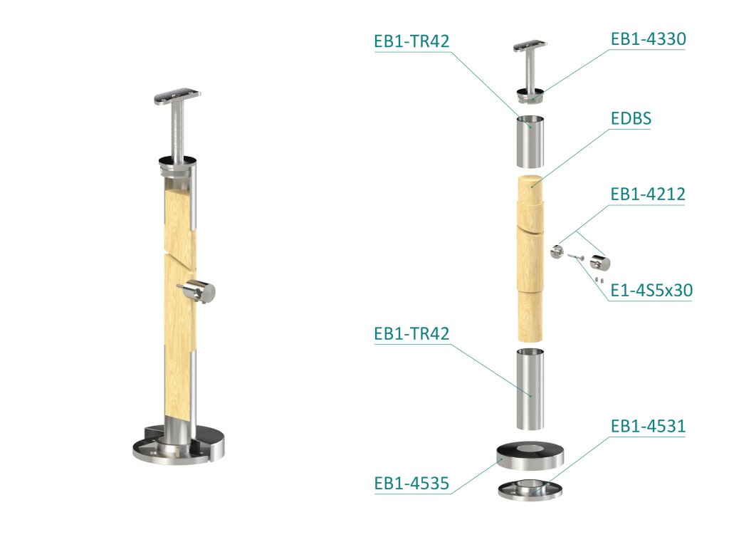 Dřevěný sloup, vrchní kotvení, 4 řadový, průchozí, vrch pevný (ø42 mm), materiál: buk, broušený povrch bez nátěruDoplňkové parametry