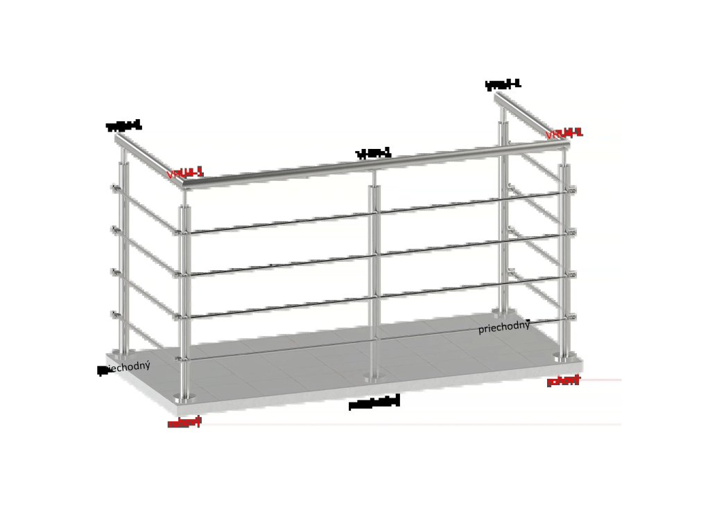Nerezový sloup, vrchní kotvení, 4 řadový průchodný, vrch pevný (ø42,4x2 mm), broušená nerez K320 / AISI316Doplňkové parametry