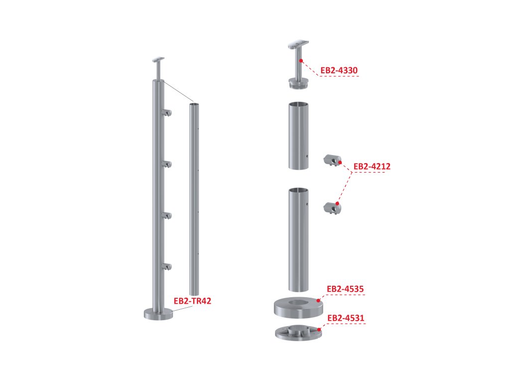 nerezový sloup, vrchní kotvení, 4 řadový průchodný, vrch pevný (ø 42.4x