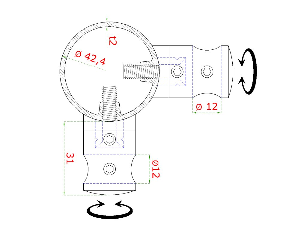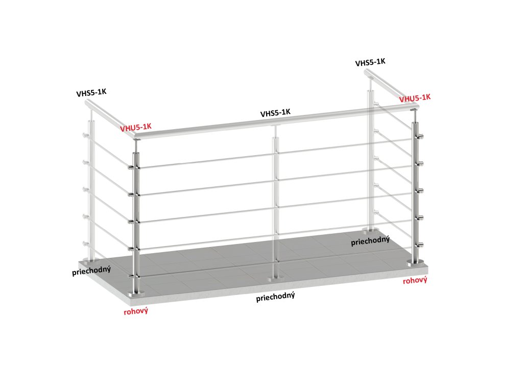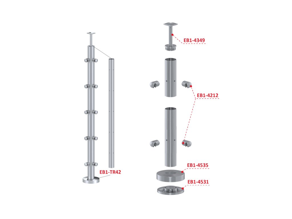 Nerezový sloup, vrchní kotvení, 5 řadový, rohový: 90°, vrch pevný (ø42,4x2 mm), broušená nerez K320 / AISI304Doplňkové parametry