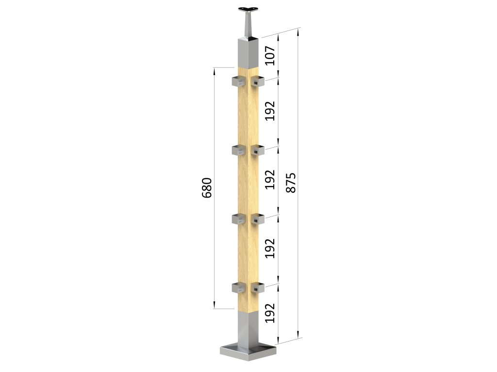 Dřevěný sloup, vrchní kotvení, 4 děrový rohový, vrch pevný (40x40 mm), materiál: buk, broušený povrch bez nátěruDoplňkové parametry