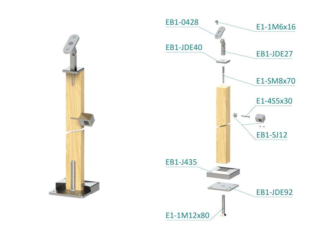 dřevěný sloup, vrchní kotvení, 4 řadový, průchodný, vrch nastavitelnýDoplňkové parametry