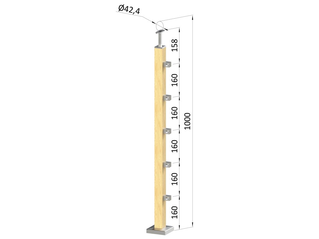 dřevěný sloup, vrchní kotvení, 5 řadový, průchozí, vrch pevný (40x40mm), materiál: buk, broušený povrch s nátěrem BORI (bezbarvý)