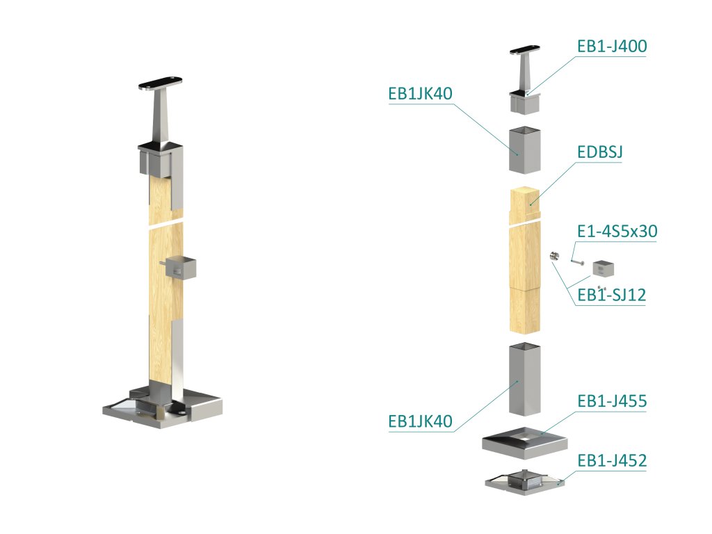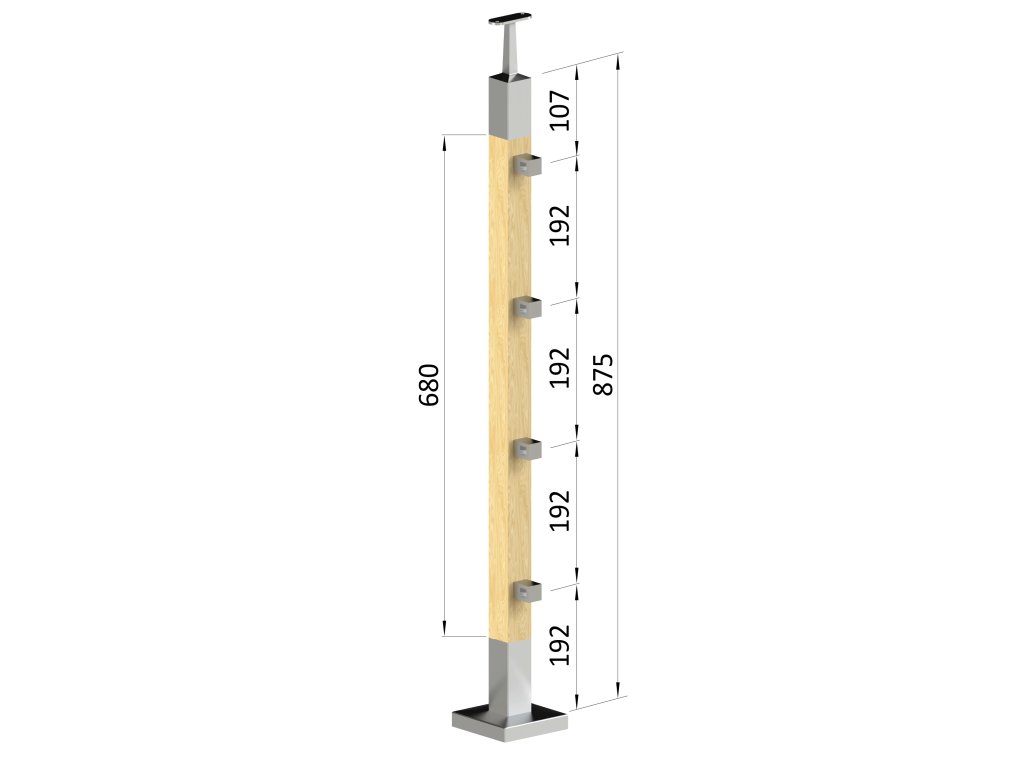 dřevěný sloup, vrchní kotvení, průchozí, 4 řadový, vrch pevný (40x40mm), materiál: buk, broušený povrch bez nátěru