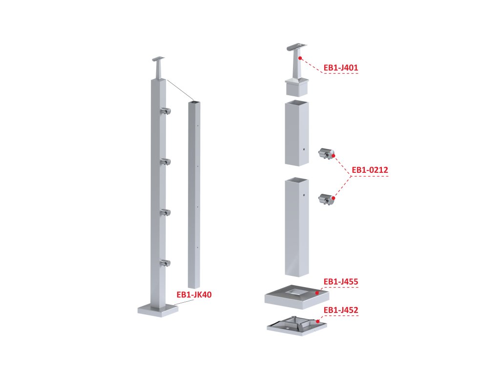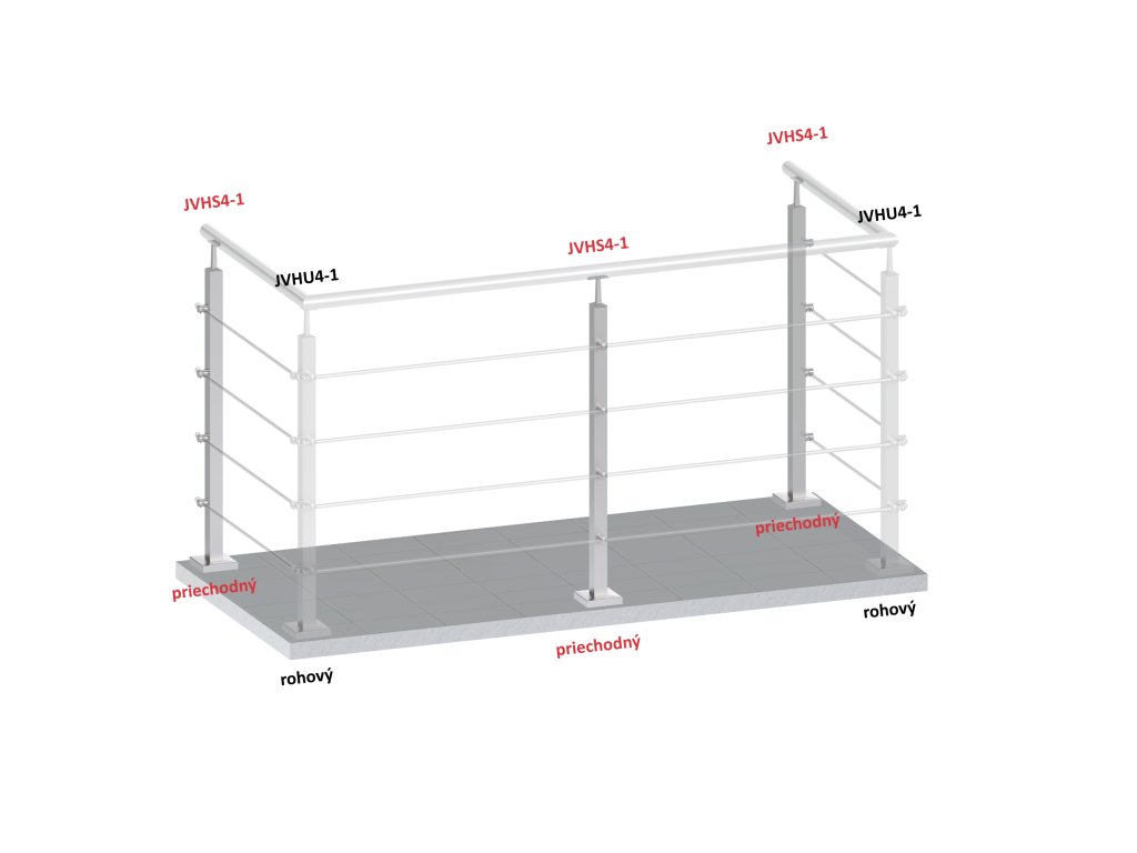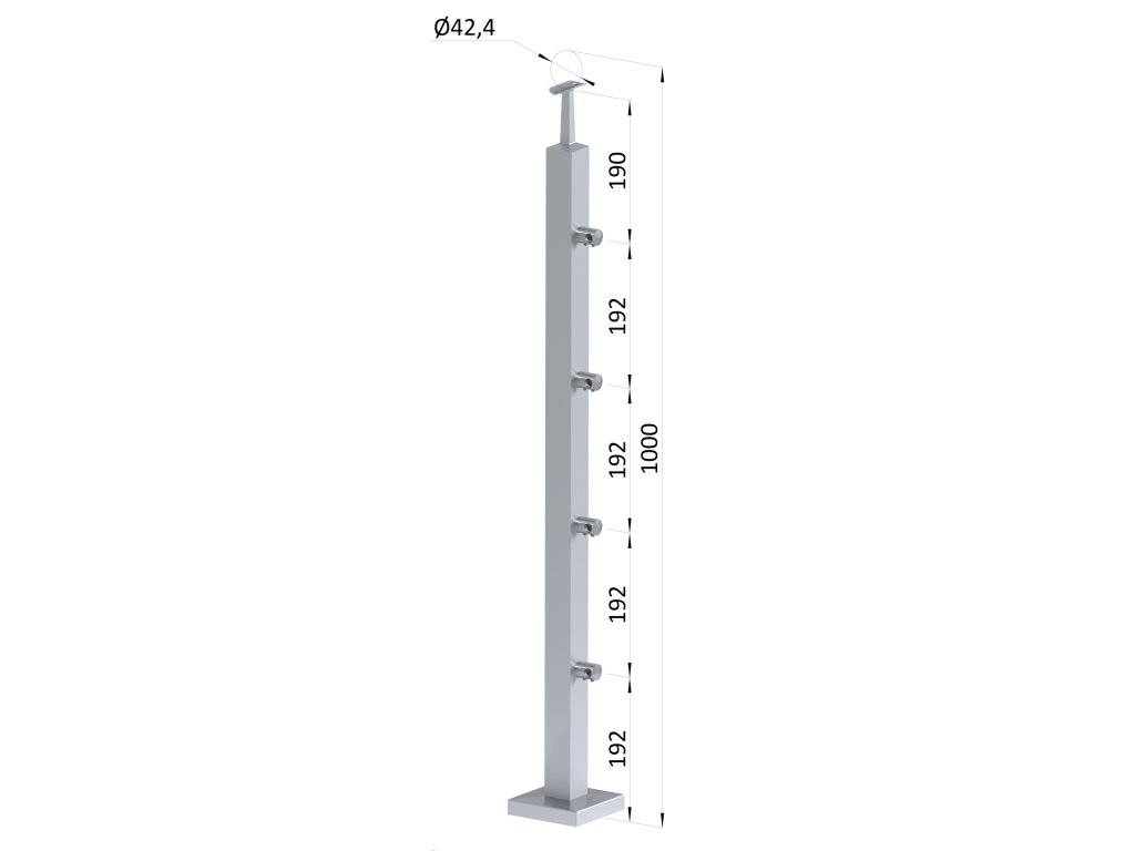 Nerezový sloup, vrchní kotvení, 4 řadový průchodný, vrch pevný,(40x40 mm), broušená nerez K320 / AISI304Doplňkové parametry