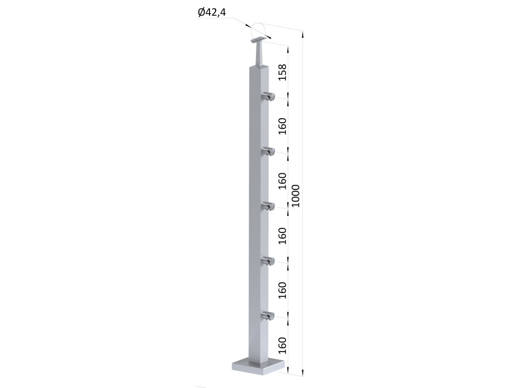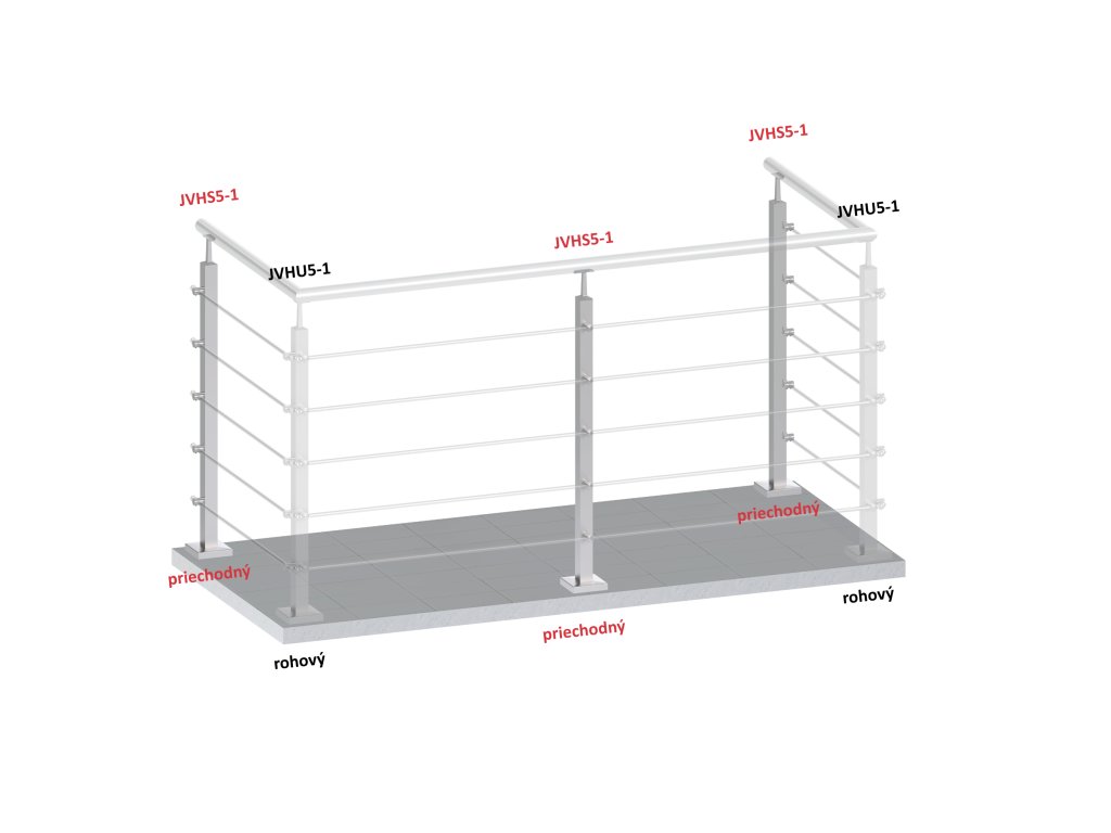 Nerezový sloup, vrchní kotvení, 5 řadový průchodný, vrch pevný,(40x40 mm), broušená nerez K320 / AISI304Doplňkové parametry